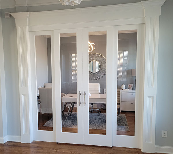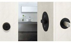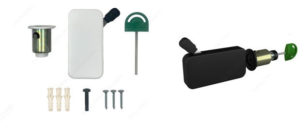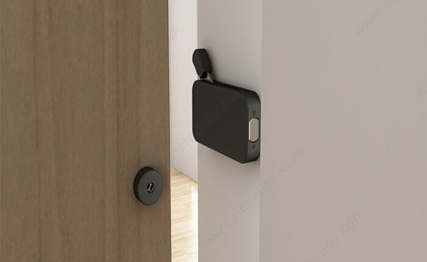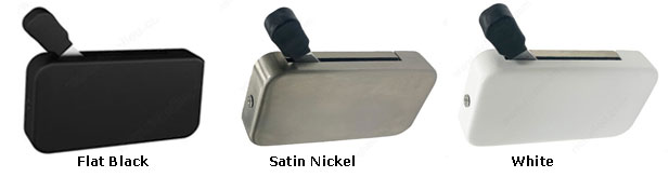 door. The mechanism is hidden behind and mounted to the back of the flat